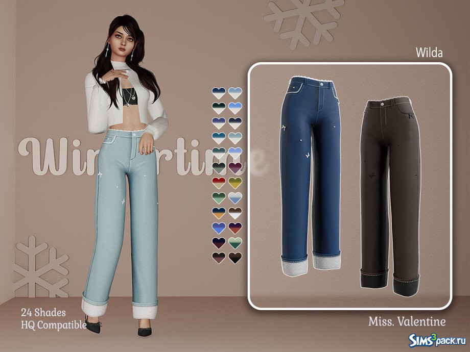 Скачать Прямые джинсы с кружевными вставками от MissValentine142 для Симс 4