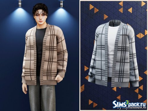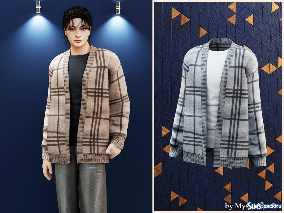 Скачать Мужской вязаный кардиган в клетку от MysteriousOo для Симс 4