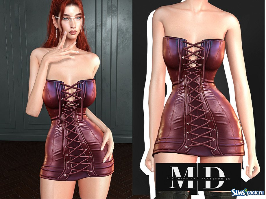 Скачать Кожаное мини - платье от Mydarling20 для Симс 4