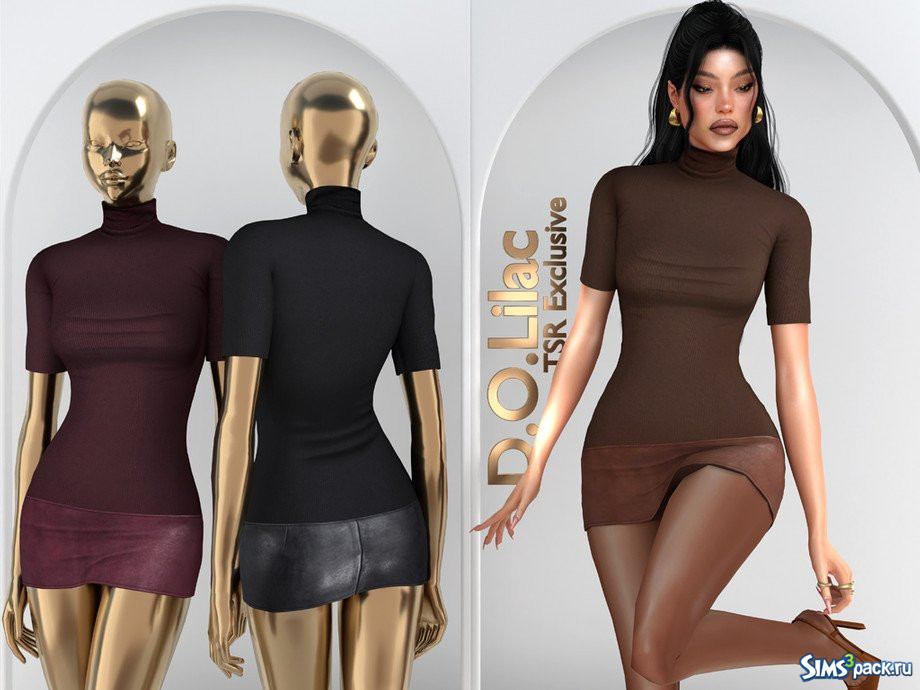 Скачать Мини - платье из ребристой кожи от D.O.Lilac для Симс 4