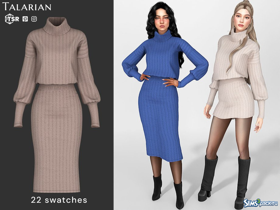 Скачать Платье - миди с трикотажным воротником от talarian для Симс 4
