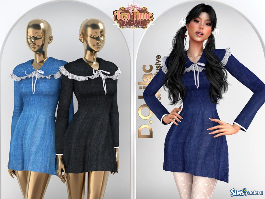 Скачать Джинсовое мини - платье с оборками от D.O.Lilac для Симс 4