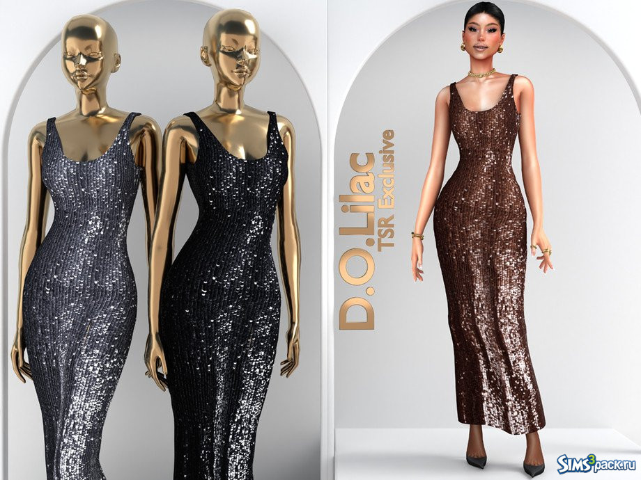 Скачать Платье - макси с пайетками от D.O.Lilac для Симс 4