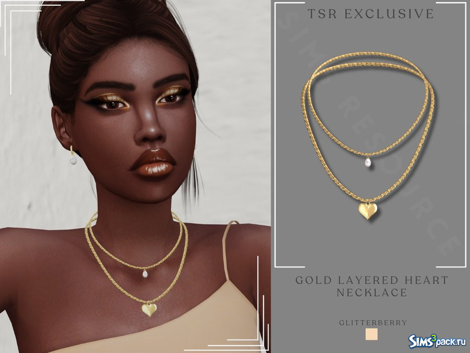 Скачать Золотое многослойное колье в форме сердца от Glitterberryfly для Симс 4