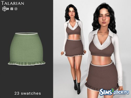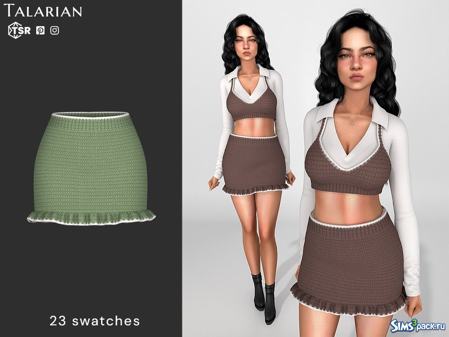 Оригинальное название - Jacqueline Knitted Mini Skirt With Ruffled Hem. Трикотажная мини - юбка с ребристой текстурой и игривым оборчатым подолом. Плотно прилегающий эластичный трикотаж создает удобный, но при этом стильный силуэт. 23 цвета. Для женщин.