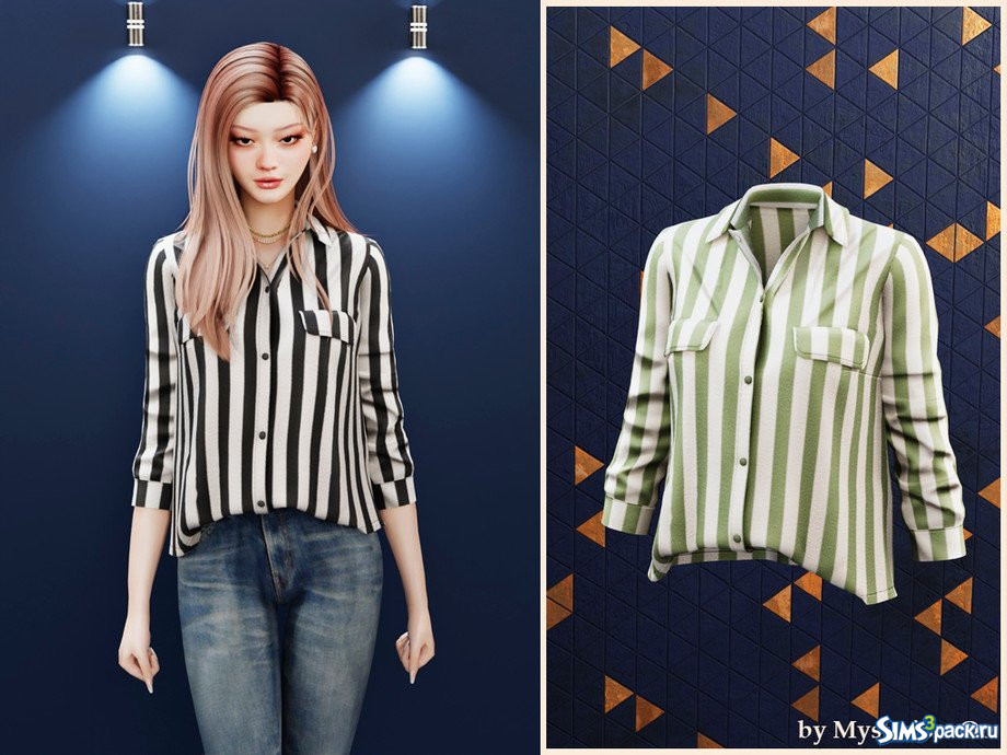 Свободная рубашка в полоску с классической застёжкой на пуговицы.