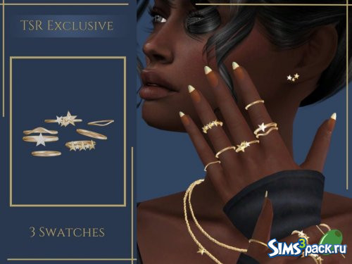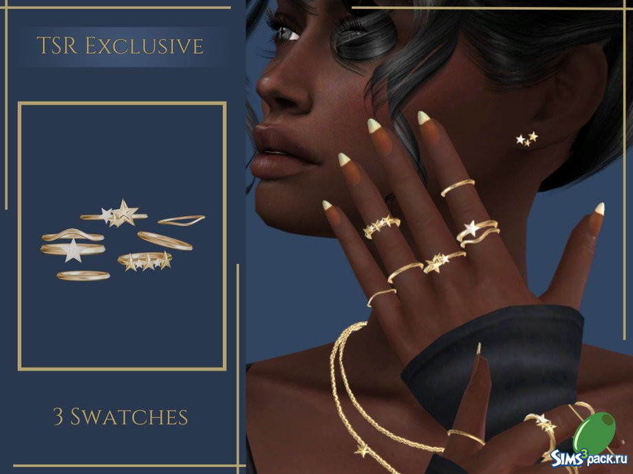 Набор колец для левой руки с золотыми и бриллиантовыми звёздами.