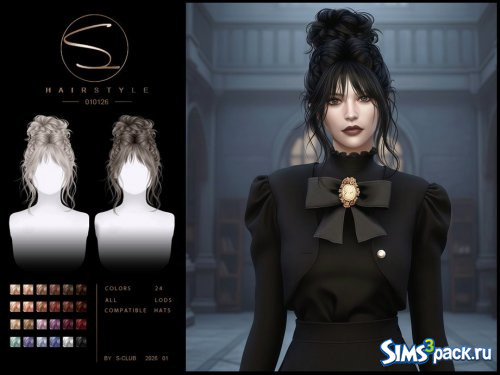 Скачать Готическая высокая причёска от S-Club для Симс 4