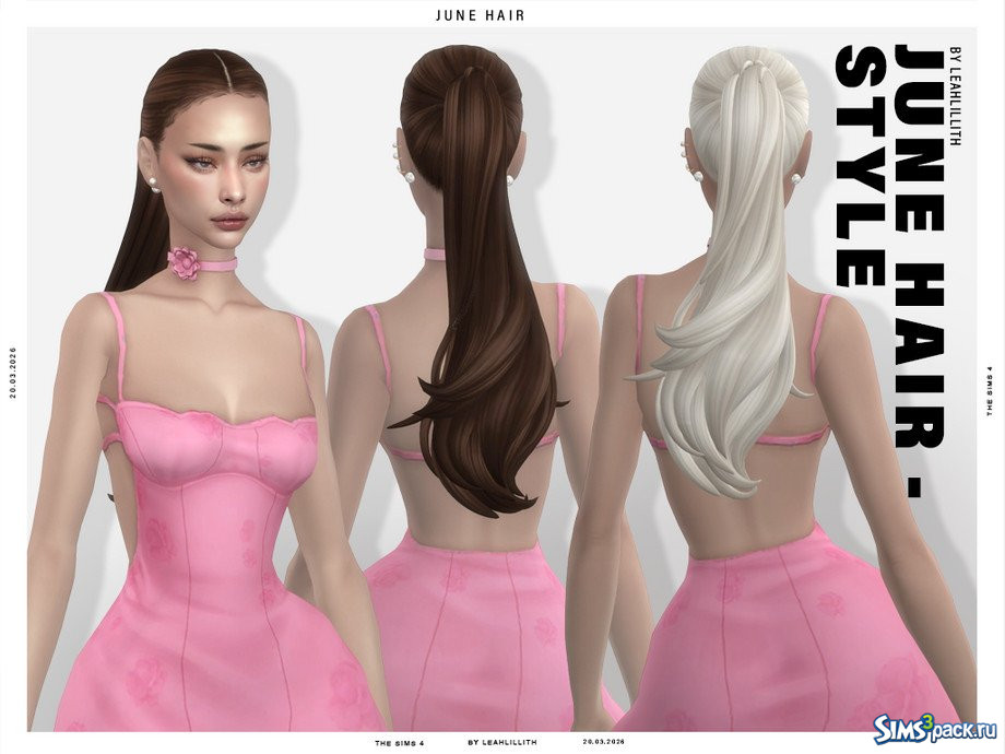 Скачать Прическа с длинным хвостом от Leah Lillith для Симс 4