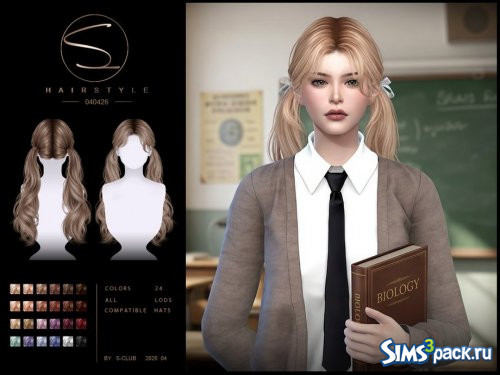 Скачать Прическа с хвостиками от S-Club для Симс 4