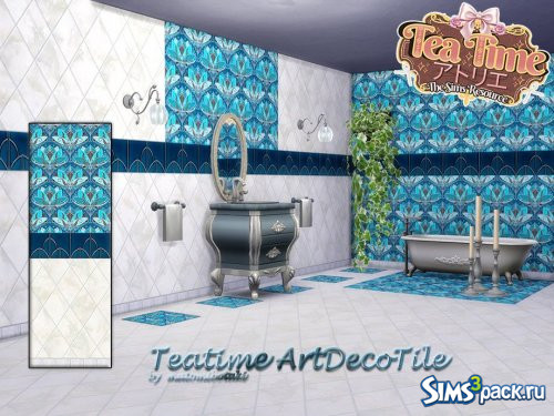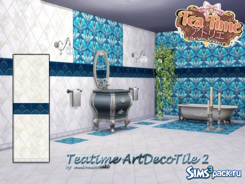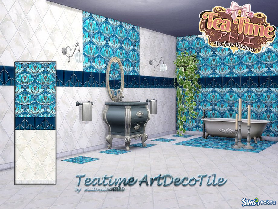 Оригинальное название - Teatime ArtDecoTile SET. Элегантная плитка в стиле ар - нуво для ванной комнаты или любого другого помещения. 3 варианта для стен разной высоты.
